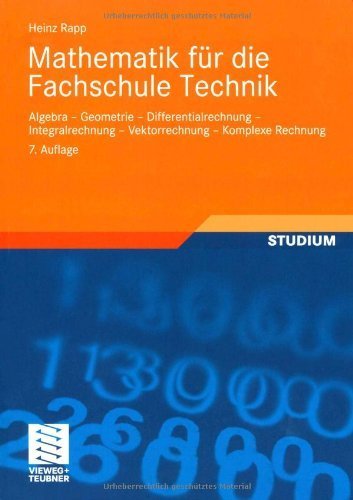 Mathematik für Die Fachschule Technik: Algebra, Geometrie, Differentialrechnung, Integralrechnung, Vektorrechnung, Komplexe Rechnung (German Edition) von Heinz Rapp (24. Februar 2010) Taschenbuch PDF Kindle